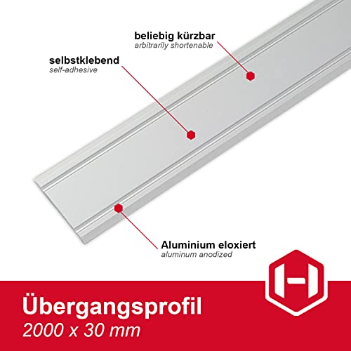 Gedotec Adesivo SUPER-FLACH per profili in alluminio | 2000 x 30 mm | Profilo per pavimento in Alluminio anodizzato argento | striscia di copertura non perforata | davanzale da incollare - 1 pezzo