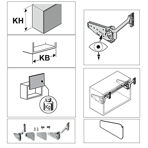 Contenuto della confezione: 1 set di raccordi per sollevamento frontale Free Up con tappi di copertura, materiale di fissaggio per la guarnizione e istruzioni di montaggio (lingua italiana non garantita). Il nostro meccanismo di sollevamento è facile da installare ed è la perfetta staffa girevole per i vostri mobili