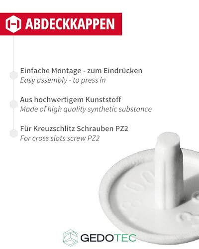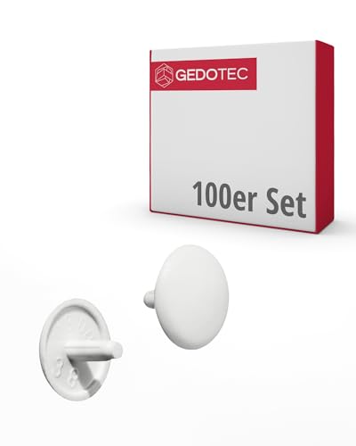 GEDOTEC Fodere per mobili Tappi a vite tondi per trapano a testa PZ2 | H1115 | Coperchi Ø 12 x 2,5 mm | Cappuccio di plastica bianco | punte per fori e mobili in legno - 100 pezzi
