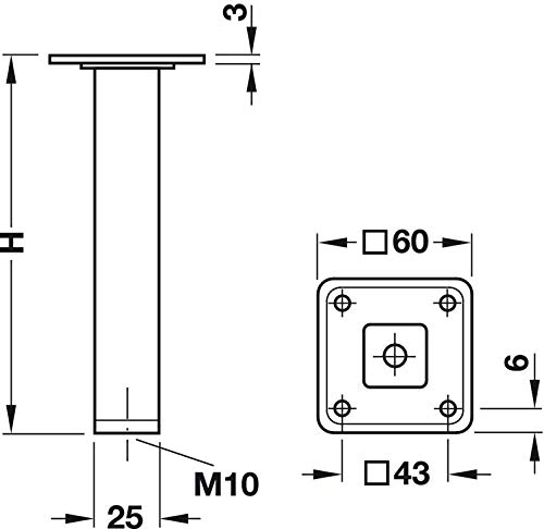✅ Prolunga con viti di regolazione per guide mobili tramite filettatura interna M10 nella guida - carico massimo e capacità di carico per gamba del mobile fino a 50 kg