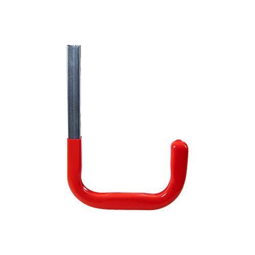 Gancio da garage di alta qualità e durevole con rivestimento in gomma rossa, ideale per appendere scale, pale, supporti per manici e molto altro ancora