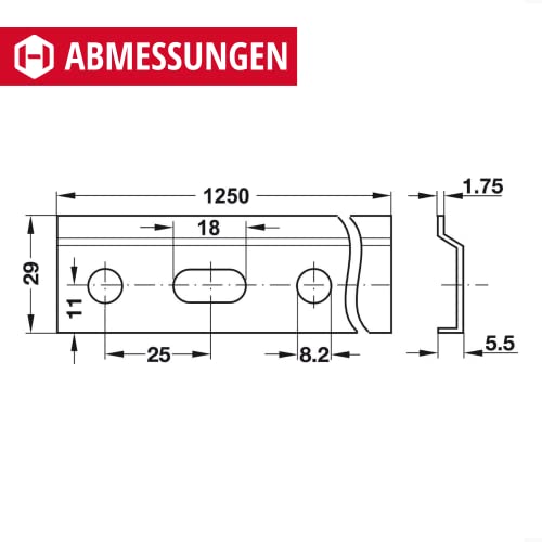 Stabile supporto per armadio con portata fino a 120 kg - Lunghezza 1250 mm - Larghezza 27 mm con foro infinito - Gancio per armadio con altezza: 70 mm. Larghezza: 14 mm