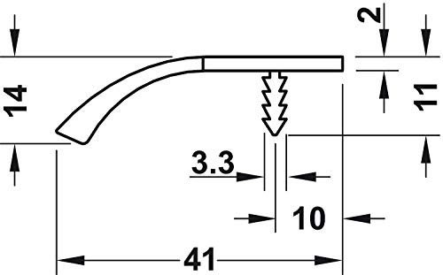 Moderna maniglia curva per armadio con lunghezza: 447 mm - adatta per larghezza del corpo: 450 mm - Spessore del materiale: 2 mm - Altezza del ponte: 11 mm - Profondità: 41 mm