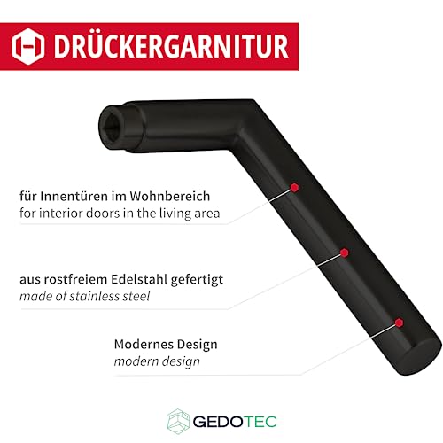 Gedotec Maniglia nera opaca [bagno] 1 x accessori porta rosetta rotonda I maniglie delle porte interne L-FORM I maniglia per porta spessore 35 - 47 mm | Maniglia per porta con materiale di fissaggio