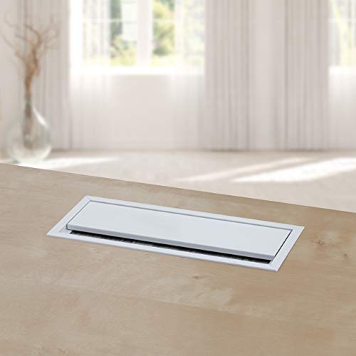 Gedotec, passacavo bianco quadrato, con guarnizione a spazzola, EXIT G11 ECO, per scrivania, scatola per cavi incassata, in alluminio, 240 x 100 mm, 1 pezzo, uscita/ingresso cavi