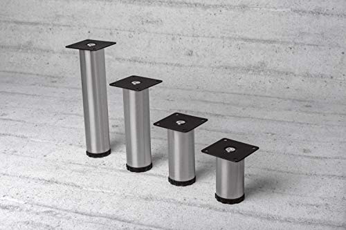 Gedotec Piedini Regolabili, Gambe per Tavoli e mobili Ø 42 mm Finish Acciaio Inox Altezza 80-200 mm Piastra di Montaggio 63 x 63 mm 25 mm Regolabile in Altezza - Acciaio Inox Finish, 100 mm