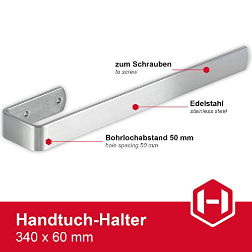 Gedotec Porta asciugamani e porta asciugamani da cucina in acciaio inossidabile spazzolato opaco - PELI | Lunghezza: 340 mm | Supporto alloggiamento ringhiera portasciugamani laterale | 1 pezzo
