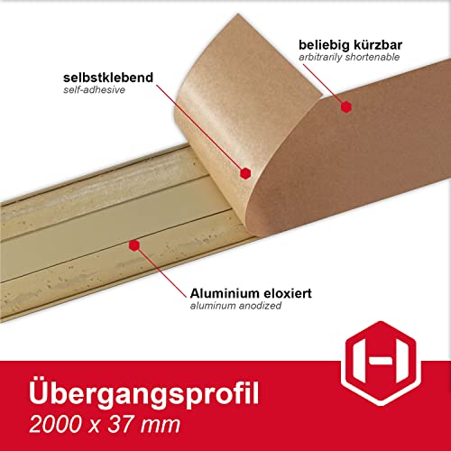 Gedotec Profilo di Transizione in Alluminio Binario di Transizione Autoadesivo Alluminio Piatto | Larghezza 37 mm | Alu Ottone anodizzato | Listello di Copertura 200 cm | 1 Pezzo