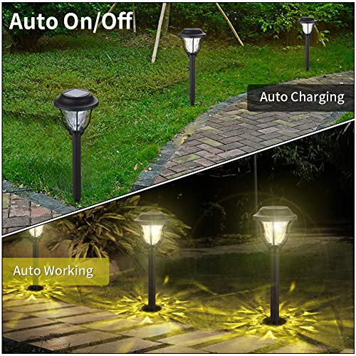 GEEDIAR Luci solari per esterni - 10 luci solari da giardino, luce bianca calda, impermeabili, a LED, per terrazza, giardino, crepuscolo fino all'alba auto on/off
