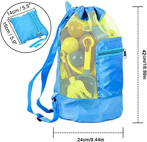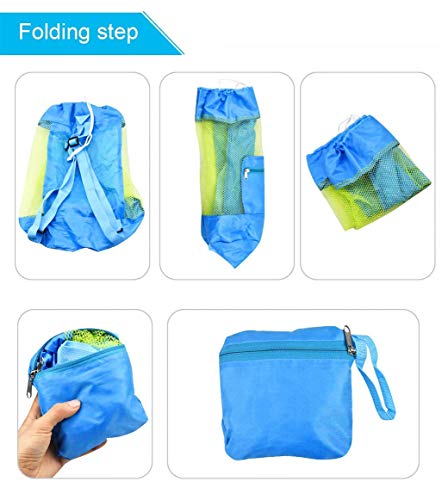 GeekerChip Borsa Giochi Spiaggia,Borsa a Rete per Giochi Spiaggia Pieghevole e Riutilizzabile per Sabbia Nuotare e Piscina e Deposito Giocattoli (Blu+Verde)