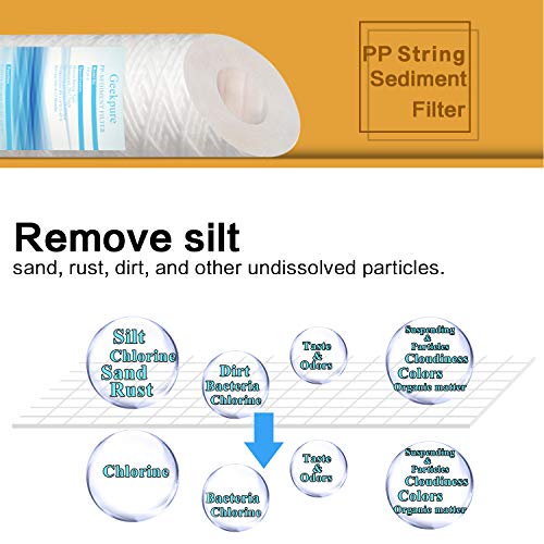 Geekpure Filtro di ricambio per sedimenti filati in polipropilene per sistema di osmosi inversa - 2,5 pollici x 10 pollici, 5 micron, confezione da 4