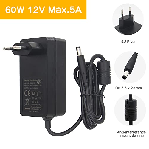 Geekworm Alimentation 12V 5A 60W, AC 100-240V, DC 5.5 x 2.1mm, pour Imprimantes 3D / Amplificateur Audio/Raspberry Pi X735 V3.0 / X880 / X832 / NASPi Gemini 2.5 V2.0