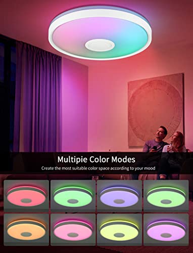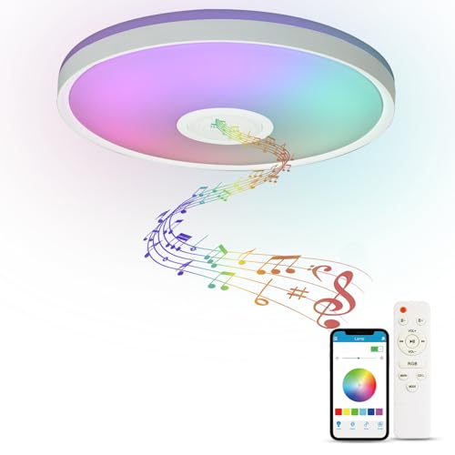 GeeliHome Plafoniere LED Soffitto RGB con Altoparlante Bluetooth, 50W Dimmerabile Lampadario con Telecomando e Controllo App, Luce LED RGB per Soggiorno Camera da Letto, 40CM