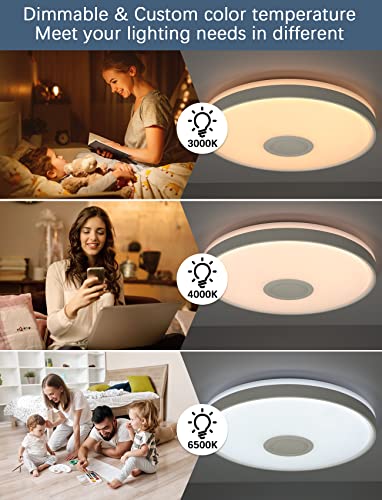 ✨【Altoparlante Bluetooth integrato】 La plafoniera musicale a LED ha un altoparlante Bluetooth indipendente integrato, puoi ascoltare la musica quando spegni la luce, collegare il telefono cellulare alla plafoniera e goderti la musica mentre cucini e dormi. Scarica l'app, La lampada soffitto led offre anche una modalità ritmica, che può realizzare la sinergia di effetti di luce e ritmo musicale, che è molto adatta per riunioni di famiglia.