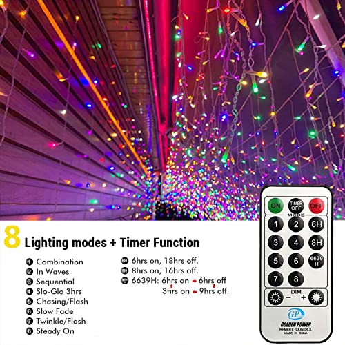 Geemoo Luci Natale Esterno Cascata, 5M 216 LED Tenda Luminosa Colorate, Luci Nataliazie con Telecomando, 8 modalità, Luci Decorazioni Natalizie per Esterno Finestra, Terrazzo, Balcone