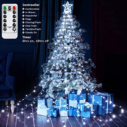 Luci Natalizie da Esterno: Luci di Natale con Stella (32cm), 317 LED bianco, 9 Stringhe da 3M, questa catena è ideale per decorare un albero di natale esterno ed Internmo.