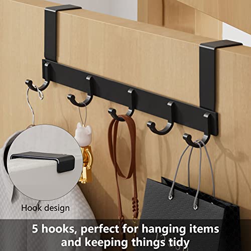 GEERDAN Appendiabiti da Porta, Attaccapanni Da Porta con 5 Ganci Senza Forare Appendiabiti Sopraporta Adatto per Porte da Camera da Letto Bagno Cucina Ufficio(Nero)