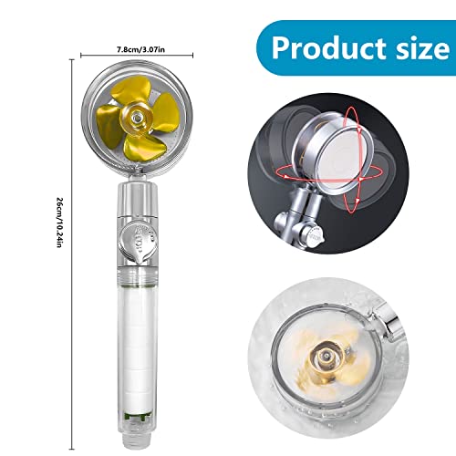 GEERDAN Soffione Doccia, Doccino per Doccia ad Elica ad Alta Pressione, Risparmio Idrico Doccia, Soffione Girevole a 360°, Con 6 Filtro e Interruttore di Pausa(Oro)