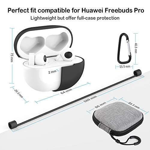 GeeRic Custodia Compatibile per Huawei Freebuds PRO, 4PCS Accessori Kit Case Protective Silicone Auricolari Cover Compatibile per Huawei Freebuds PRO 2020 Leggero Impermeabile Buono Regalo Nero