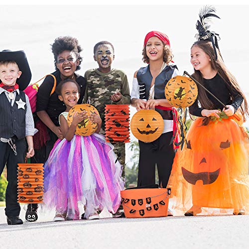 GeeRic Lanterna Halloween, 5PCS Decorazione Halloween Zucca Lanterne di Carta per Halloween, Strega Zucca Arancia (Non Include Bastone di Lanterna) (Gruppo 3)