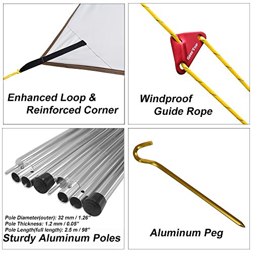 GEERTOP Tenda da Sole Vele Parasole Telone Resistente Tarp - 500 x 440 cm - 5-8 Persone Impermeabile da Campeggio