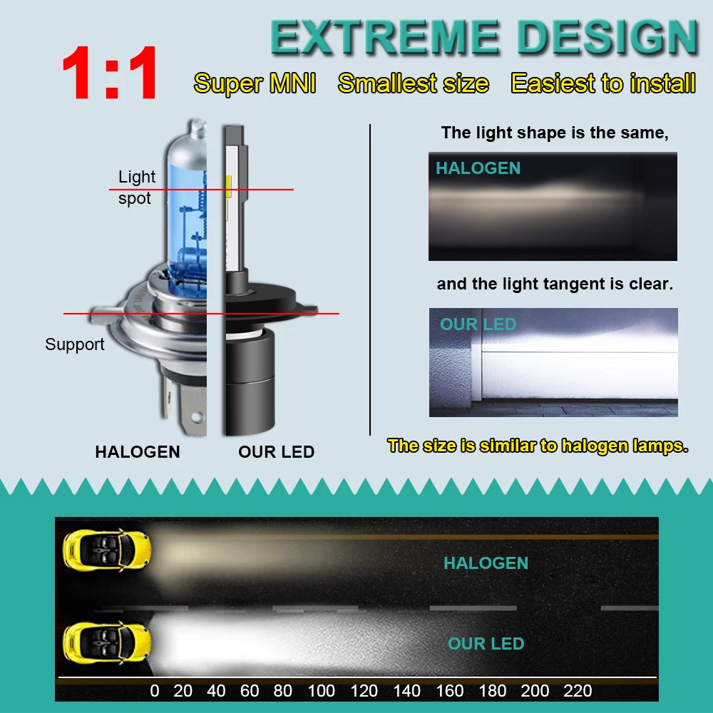 GEETANS H4 LED H7 H8 H9 H10 H11 H13 H16 9004 9005 9006 9007 CSP Auto Car Headlight Super Mini Automobile Lamp Fog Light 12V CE