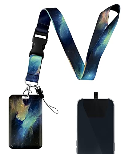 Geiomoo Cordino da Collo con Porta Badge, Cordoncino con Carte e Patch di Telefono per Chiavi, Carte di Identità (Galassia 1)