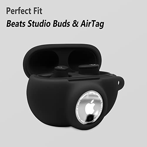 Geiomoo 2 in 1 Custodia in Silicone Compatibile con Beats Studio Buds e Air Tag, Protettiva Cover con Moschettone (Nero)