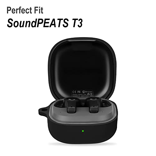 Geiomoo Custodia in Silicone Compatibile con SoundPEATS T3, Morbido Resistente Agli Urti e Ai Graffi Protettiva Cover con Moschettone (Nero)