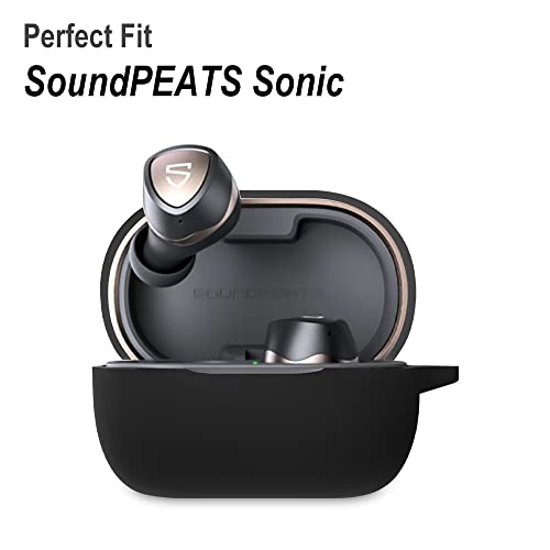 Geiomoo Custodia in Silicone Compatibile con SoundPEATS Sonic, Morbido Resistente Agli Urti e Ai Graffi Protettiva Cover con Moschettone (Nero)