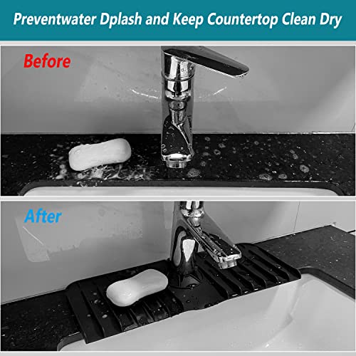 Geiomoo Tappetini per Lavello in Silicone, Antispruzzo Drenante Tappetino per Rubinetto per Cucina (Nero)