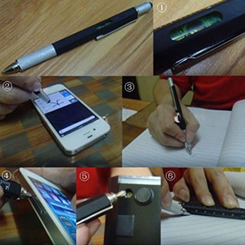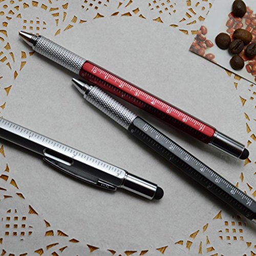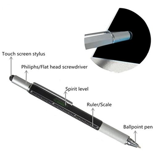 Geishiglobal, penna multiuso 6 in1 a stilo, con livella a bolla, righetto, idea regalo Grey