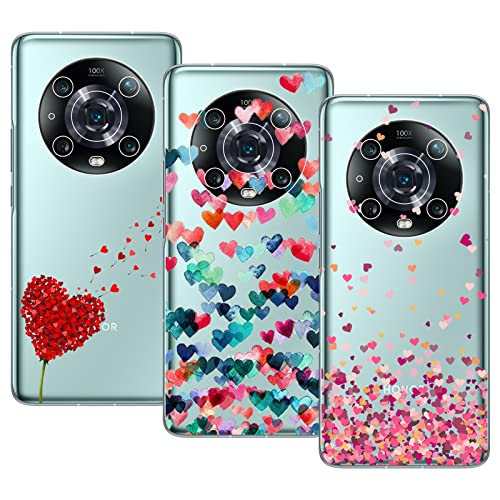 GEJEFA Cover per Honor Magic 4 PRO 5G/Magic4 PRO 5G, 3 Pack Sottile Morbido TPU Bumper Silicone Antiurto Protettiva Custodia per Honor Magic4 PRO 5G con Disegni Cuore