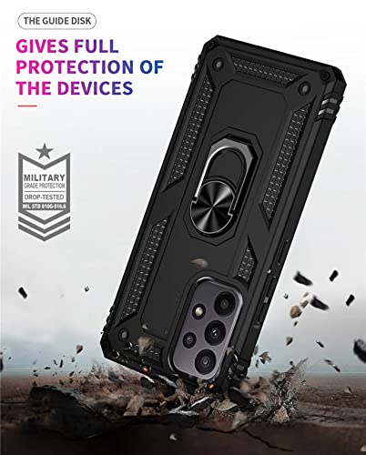 GEJEFA Cover per Samsung Galaxy A23 5G/4G con 3 Pezzi Vetro Temperato, Military Grade PC Back Cover e Antiurto TPU Bumper Case, Anello in Kickstand Girevole a 360 Gradi, Stile Armatura, Nero