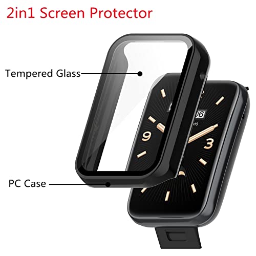GEJEFA Cover per Xiaomi Mi Band 7 PRO/Smart Band 7 PRO Custodia + Pellicola Protettiva,[2 Pezzi][Copertura Completa] Custodia Rigida Protettiva in Vetro Temperato Integrata,Trasparente+Nero