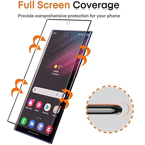 [Copertura Completa 3D] La pellicola in vetro temperato del Samsung Galaxy S23 Ultra utilizza la tecnologia di taglio laser di precisione. Il bordo curvo 3D copre completamente lo schermo Samsung Galaxy S23 Ultra e non ci sono crepe tra lo schermo e il bordo, che si adatta perfettamente allo schermo del telefono e impedisce efficacemente i graffi dello schermo.