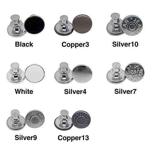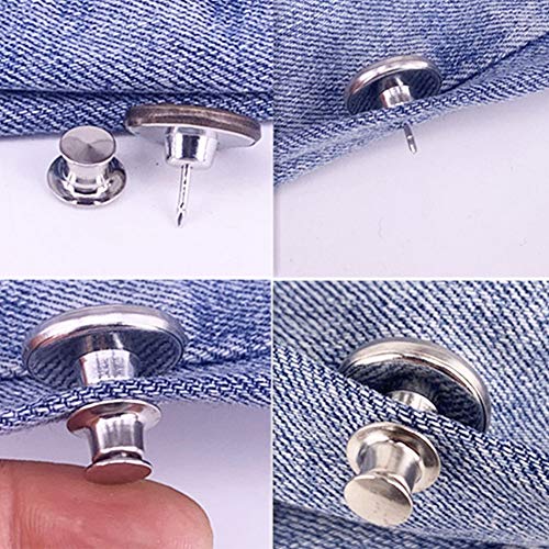 GeKLok - Bottoni per jeans, 6 pezzi, bottoni di ricambio per jeans, senza cucitura, bottoni istantanei regolabili e rimovibili, per pantaloni e jeans (argento4)