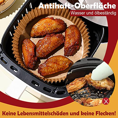CARTA FORNO 【Materiale sano e affidabile】 La carta da forno per friggitrice ad aria è realizzata in pergamena alimentare, è impermeabile, resistente all'olio, antiaderente, sana al 100% e con una buona resistenza al calore. La carta pergamena della friggitrice ad aria è realizzata con pasta di legno vergine ed è completamente priva di fluorescenza, può resistere a temperature fino a 428 gradi Fahrenheit e non influirà sul gusto del cibo.