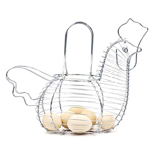 Gelentea Innovativo Porta Uova a Forma di Gallina in Filo di Metallo Frutta Cesto Home Snacks Organizer Cucina Frutta Cesto Filo Uova