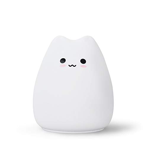 Gelentea LED Luce Notturna, Silicone Tocca Pat Sensore LED Luce Notturna per Bambini Bambino Bambini 7 Colori 2 Modalità Fumetto Gatto Carino USB LED Lampada Notte