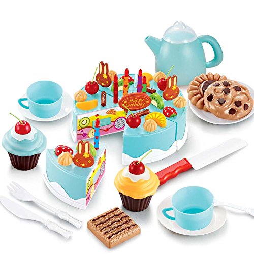 Gelentea Torta di compleanno, modello fai da te, per bambini, educativo, fai finta di giocare a cucina e cibo in plastica, regalo per ragazze di 3 anni e fino blu