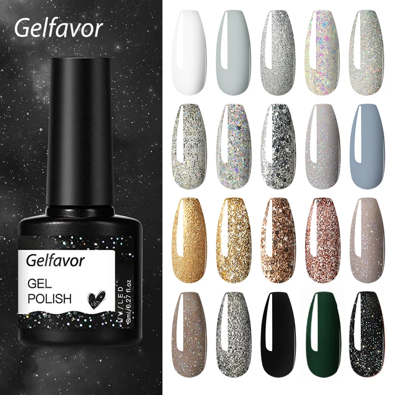 Gelfavor Nail Gel Polish UV LED Lamp Shiny Semi-permanent Glitter For Manicure Set Nail Art Base Coat Primer Gel Varnishes