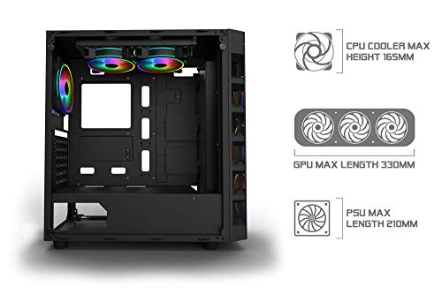 DIMENSIONI OTTIMALI: il case modding ha una dimensione di 40x21x48 cm (AxLxP) e offre molto spazio con connessioni per GPU, CPU, alimentatore, raffreddamento ad acqua, diversi dischi rigidi e altri componenti.