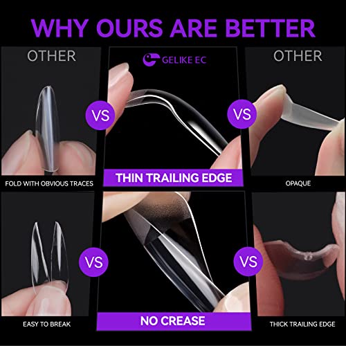 Materiale di alta qualità: le punte delle unghie Gelike ec all sono particolarmente resistenti e durevoli, proprio come le unghie naturali. Realizzati in resina PMMA di alta qualità, che li rende resistenti e durevoli nell'uso quotidiano, non preoccuparti di rotture o pieghe.