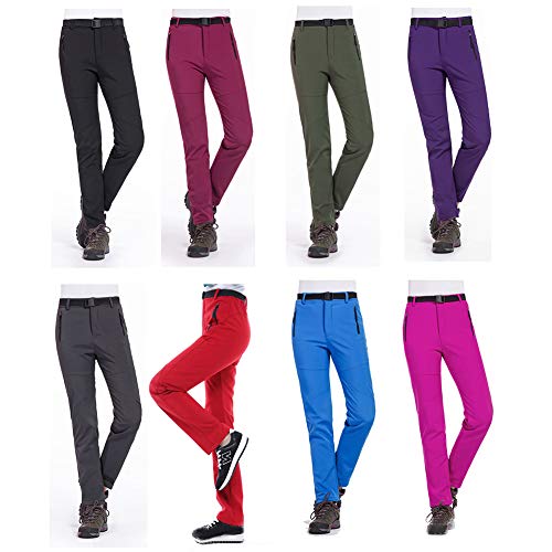 GELing Pantaloni da Trekking Impermeabili Softshell Invernale da Unisex Pantaloni Foderati in Pile Pantaloni da Arrampicata Escursionismo Termici da Sci,Rosso-Donne,XL