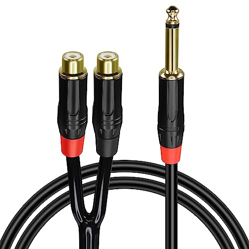 GELRHONR 1/4Inch 6.35mm Mono to RCA Splitter Cable,6.35mm Male to Dual RCA Female Audio Adapter Cord (1)