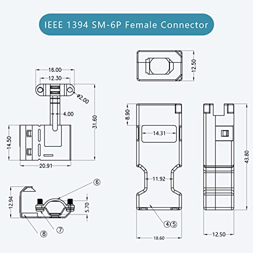 GELRHONR Adattatore IEEE1394, jack IEEE 1394 SM-6E, connettore femmina JZSP-CMP9-1-P 6 pin jack encoder 54280-0609 Yaskawa Panasonic Servo CN3 connettore