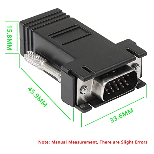 GELRHONR Adattatore da VGA a RJ45, VGA a 15 pin maschio/femmina a RJ45 femmina, espansione di trasmissione tramite cavo Ethernet CAT5 CAT6 per video multimediali, confezione da 2, Nero