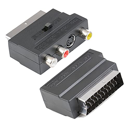 GELRHONR Adattatore AV SCART commutabile Euro, SCART maschio a RCA AV femmina con S Video per DM VHS TV DVD VCR-2PCS
