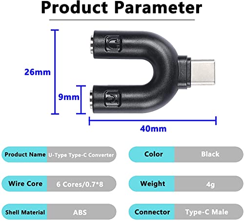 L'adattatore audio tipo U da 1 a 2 x 3,5 mm è adatto per telefoni cellulari, altoparlanti, laptop, tablet, ecc.